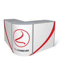 Dieses Einstiegsmodell für wertige Displays mit breitem Fuß setzt auf Stabilität und Design. Der Austritt der Grafik aus dem Fuß befindet sich in Bodennähe, so dass von vorne nur ein sehr schmaler Streifen des Fusses zu sehen ist.