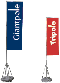 Mit den mobilen Fahnenständern Giantpole und Tripole wird Ihre Werbung im Außen- und Innenbereich unübersehbar. Besonders bei Open-Air-Veranstaltungen sind diese Fahnensysteme durch ihre Höhe ein wahrer Publikumsmagnet! Flexibel im Einsatz, schnell im Aufbau und absolut zuverlässig im harten Werbe-Alltag - mit Giantpole und Tripole können Sie Flagge zeigen!