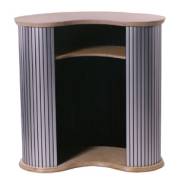 Der Kunststoffkorpus des Rollcounter ist standardmäßig silbermetallic lackiert, die Holzteile sind buchefarben. Die Theke ist hinten offen und mit einem Zwischenboden versehen. Höhe ist 100cm.