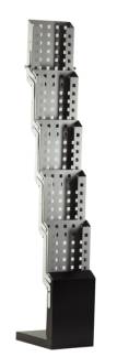 Wirkung Ihrer Verkaufsunterlagen unterstützt. Fünf Prospektschalen aus Metall ermöglichen die Prospektaufnahme von A4 Prospekten. Ein massiver Fuß sorgt für einen sicheren Stand. Ihre Prospekte können während des Transportes im Tom-Prospektständer verbleiben.