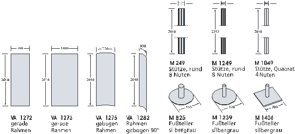 Gebogene Rahmen: 700 x 2010 mm bzw. 90° Rahmen: 350 x 2010 mm